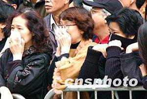 中新社香港一月十二日電(記者曉萍)患癌癥去世的香港著名藝人梅艷芳今日舉殯。大殮儀式于上午十一時(shí)開(kāi)始,隨后布滿白色鮮花的靈車將靈柩送往柴灣哥連臣角火葬場(chǎng)火化。逾千名梅艷芳的歌、影迷在北角殯儀館外夾道送別,場(chǎng)面哀痛。