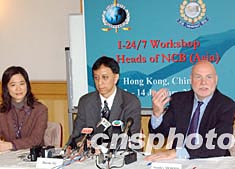 香港警方及國際刑警組織秘書處于元月十三日在港聯(lián)合舉辦“國際刑警全球聯(lián)絡(luò)系統(tǒng)I-24/7”訓(xùn)練課程及工作坊開幕儀式,該系統(tǒng)為國際刑警各分局進(jìn)行了技術(shù)革新,提供一個(gè)更加安全有效,并且更符合成本效益的通訊系統(tǒng),以供亞洲地區(qū)中心局的警務(wù)人員參加。圖為國際刑警組織秘書處負(fù)責(zé)有關(guān)聯(lián)絡(luò)系統(tǒng)的主管Stanley morris(右一)在儀式上向傳媒介紹有關(guān)情況。作者:錢興強(qiáng)
