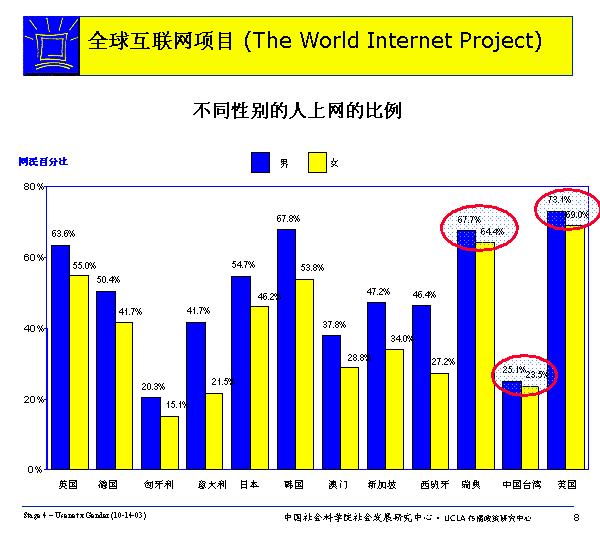 各國(guó)用網(wǎng)狀況:不同收入、性別的人上網(wǎng)比例