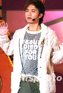 2004年度國(guó)際華裔小姐競(jìng)選決賽一月十七日晚在香港舉行,表演嘉賓古巨基在華裔小姐競(jìng)選上演唱。 作者:錢興強(qiáng)