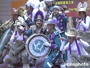 為迎接中國(guó)農(nóng)歷新年的到來(lái),香港舉辦“2004國(guó)泰航空新春國(guó)際匯演”,在一月十九日舉行的發(fā)布會(huì)上,來(lái)自澳洲“手舞足蹈活力樂(lè)隊(duì)”進(jìn)行表演。