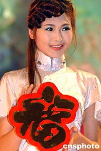 中國(guó)傳統(tǒng)農(nóng)歷新年將至,中國(guó)各地呈現(xiàn)出一派過(guò)年氣氛,在一臺(tái)時(shí)裝展示會(huì)上模特手捧新春福字喜氣洋洋向人們祝福。作者:錢(qián)興強(qiáng)