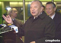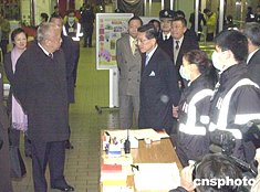 香港特別行政區(qū)行政長官董建華,元月二十日來到羅湖口岸管理站進行巡視,了解春節(jié)期間關(guān)口疏導(dǎo)人潮的安排和健康檢察措施。作者:錢興強