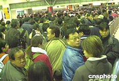 春節(jié)期間,香港羅湖口岸管理站加強各項管理措施,及時疏導(dǎo)出入關(guān)口的人潮。香港特別行政區(qū)行政長官董建華等政府官員,元月二十日來到羅湖口岸進行巡視。作者:錢興強  羅湖口岸客流量明顯增大,往返于香港、深圳的大批客人等候過關(guān)。作者:錢興強