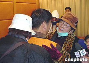 元月20日,臺灣涉嫌間諜王長勇在福州與來探視的母親等家人相擁會面。作者:陳國明