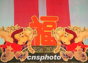 一月二十一日,第三屆北京民俗文化節(jié)暨第六屆東岳廟文化廟會隆重開幕,在廟會開幕式上來自河南新鄉(xiāng)的農(nóng)民藝術(shù)家身背架桿,正在表演“驚、險、奇、巧”為特色的民間傳統(tǒng)節(jié)目“背樁”。中新社記者:張勤  北京地壇廟會拉開帷幕,本應(yīng)猴年初一登場的猴們迫不及待提前鬧春。作者:徐曦弋