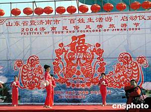 中國(guó)農(nóng)歷大年初一上午,山東省濟(jì)南市政府與省旅游局聯(lián)合在省城泉城廣場(chǎng)舉辦“二00四濟(jì)南春節(jié)民俗風(fēng)情旅游節(jié)”。開幕式上,來(lái)自各地的藝術(shù)家為廣大市民和海內(nèi)外游客表演了民俗藝術(shù)和歌舞等精彩的節(jié)目。作者:胡洪林