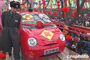 春節(jié)期間,北京民政局借白云觀廟會(huì)的旺盛人氣,恢復(fù)推出即開(kāi)型實(shí)物彩票,大批逛廟會(huì)的市民爭(zhēng)相購(gòu)買(mǎi)彩票,希望摸得汽車(chē)等大獎(jiǎng)。中新社記者:張煒