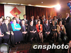 由澳洲華人公益金發(fā)起、新南威爾士州八十多個華人社團聯(lián)合主辦的農(nóng)歷新年聯(lián)歡晚會23日在悉尼唐人街隆重舉行。澳大利亞移民部長溫思端(前排左2)、律政部長雷鐸(前排左3)以及華人社團領袖與600多名嘉賓歡聚一堂,共祝澳洲繁榮穩(wěn)定、人民安居樂業(yè)。中新社記者劉雨生攝