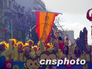 為了參加這次彩妝游行,展示華人新風(fēng)采,法華社團(tuán)進(jìn)行了“總動員”,旅法僑界攜手,專門從中國訂制了彩車裝飾、彩旗、唐裝、鑼鼓等物品。游行中,六百名僑界青年首先亮相,他們手持鮮花,載歌載舞,盡情抒發(fā)對美好未來的憧憬。“開天辟地”、“女媧補(bǔ)天”、“水母娘娘”、“醒獅鬧春”等數(shù)十輛精心準(zhǔn)備的彩車千姿百態(tài),而六千名華人華僑穿著節(jié)日盛裝進(jìn)行傳統(tǒng)舞獅、舞龍、鑼鼓、舞蹈等表演,更是充分展現(xiàn)龍的傳人的風(fēng)采。