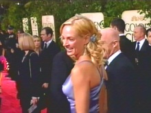 烏瑪舒曼的緞面淡紫色晚禮服,和莎莉塞隆鵝黃色波浪狀晚禮服,在今天也備受贊譽(yù),令二人顯得落落大方。尤其是莎莉塞隆,在經(jīng)歷電影“女魔頭”中天字第一號宇宙無敵的超丑妝打扮之后,今天根本就讓觀眾“驚為天人”。