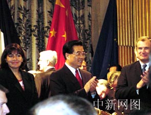 上午十一時半,在軍樂隊和儀仗隊的列隊引導下,胡錦濤主席健步邁入巴黎市政廳燈火輝煌的節(jié)日大廳,受到巴黎市官員、議員、各國駐法使節(jié)等一千多各界人士的鼓掌歡迎。