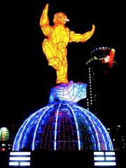 臺(tái)北縣當(dāng)局指出,今年的燈會(huì)相當(dāng)有看頭,這座象征“登峰造極”的科技獼猴主燈共使用一萬五千個(gè)燈泡,除了延續(xù)往年的360度旋轉(zhuǎn),也是第一次采取油壓升降的上下動(dòng)態(tài),同時(shí)搭配高科技聲光,燈座周圍還會(huì)發(fā)出熊熊火焰,光彩奪目的效果將創(chuàng)歷年之最。