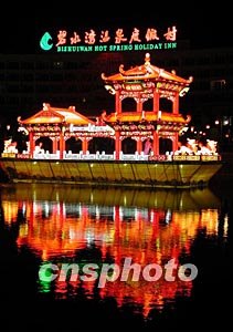 一元復(fù)始,大地回春,流溪兩岸彩燈萬盞賀元宵。在廣州從化碧水灣溫泉度假村舉行的大型“彩燈廟會”,匯集了“天下第一彩燈--自貢”之精華,精心制作大型水上彩燈。作者:鄧嘉樂