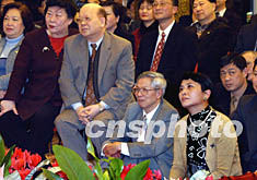 二月五日是農(nóng)歷元宵節(jié)。晚上,二百多位紐約僑胞聚集在中國駐紐約總領(lǐng)館,看文藝表演,品嘗元宵。圖為《曼哈頓的中國女人》的作者周勵(右一)席地而坐,與友人們欣賞內(nèi)地藝術(shù)家演唱的中國民歌《一條大河》。中新社記者:陳建