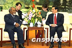 索馬雷感謝胡錦濤主席會(huì)見。他說,巴新與中國建交二十八年來,兩國關(guān)系不斷深化,給兩國人民帶來了許多實(shí)際利益。中國給予巴新方經(jīng)濟(jì)技術(shù)援助幫助我們發(fā)展了經(jīng)濟(jì),提高了人民生活水平。我此訪非常成功,相信這將進(jìn)一步增強(qiáng)兩國的友誼與合作。