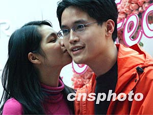 組圖:香港舉行"情侶體驗(yàn)情人節(jié)之吻"活動(dòng)