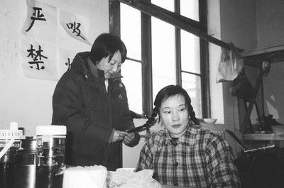 化妝間里,她正在梳辮子,一邊和聞?dòng)嵾^來看她的北影老演員樊姨聊著。在這部戲里,她演的艾蓮是右派的老婆、4個(gè)孩子的媽。穿上花棉襖,在《281封信》里時(shí)尚干練的老總一下子變成了上世紀(jì)70年代樸素內(nèi)向的母親。劉曉慶很喜歡這個(gè)造型,這讓她想起了以前拍攝《許茂和他的女兒們》、《芙蓉鎮(zhèn)》等的情景。其實(shí)她以前沒少演底層人物,只是后來看多了她的古裝美人,一時(shí)竟讓人對(duì)她的這種造型有些不信。這是她進(jìn)組的第一天,5點(diǎn)就起床出門,估計(jì)得拍到天黑。導(dǎo)演對(duì)她和李幼斌的對(duì)手戲很滿意,進(jìn)度順利。