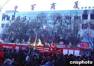 吉林市中百商廈位于吉林市解放大路與長春路交匯處,共有五層樓。商廈的第一層和第二層是商場,第三層是洗浴中心,第四層是臺球廳,第五層是歌舞廳。起火地點在商場二層。
