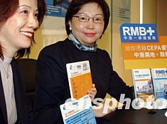 中信嘉華銀行二月二十六日在香港推出優(yōu)越個(gè)人人民幣服務(wù),“RMB+中港一線通服務(wù)”,包括個(gè)人人民幣服務(wù)及與CEPA相關(guān)的商業(yè)服務(wù),專為需要中國(guó)有關(guān)的銀行服務(wù)客戶提供增值的財(cái)務(wù)配套支持。圖為該銀行執(zhí)行副總裁林劉德美(右)和高級(jí)副總裁李笑英向傳媒介紹優(yōu)越個(gè)人人民幣系列服務(wù)內(nèi)容。作者:錢興強(qiáng)