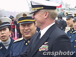 據(jù)悉,“藍(lán)嶺”號(hào)指揮艦訪滬期間,威拉德一行拜會(huì)了海軍東海艦隊(duì)司令員趙國鈞中將和上海市副市長(zhǎng)馮國勤,美艦官兵參觀了中國自行研制的導(dǎo)彈護(hù)衛(wèi)艦,游覽了上海市容,中美海軍官兵還舉行了軍樂表演交流和籃球友誼比賽等一系列聯(lián)誼活動(dòng)。