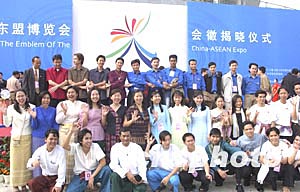 二月二十九日,中國—東盟博覽會(huì)會(huì)徽“凝聚·綻放·繁榮”的面紗在南寧國際會(huì)展中心揭開,中國—東盟博覽會(huì)開始以嶄新、統(tǒng)一、鮮明的形象面向世界。作者:劉萬強(qiáng)
