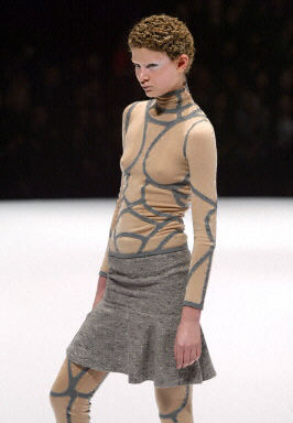 3月5日,在巴黎2004/2005秋冬時(shí)裝周上,模特展示設(shè)計(jì)師新款時(shí)尚秋冬女裝。