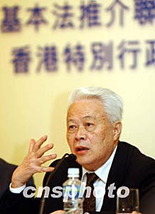中新社香港三月十五日電 (記者陶社蘭)香港“一國(guó)兩制”研究中心今天下午在此間舉行“《基本法》頒布十四周年”座談會(huì),幾位當(dāng)年為起草香港《基本法》作出重大貢獻(xiàn)的內(nèi)地法律專家及本地法律專家出席,暢談《基本法》。