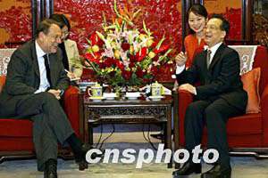 中新社北京三月十六日電 (記者 朱大強(qiáng))中國總理溫家寶今天在此間會(huì)見了到訪的歐盟理事會(huì)秘書長兼歐盟共同外交與安全政策高級代表索拉納。