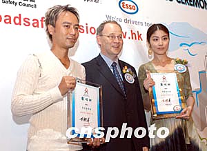 歌星陳慧琳、李克勤3月18日在香港出席《道路安全愿景暨標(biāo)志創(chuàng)作比賽》記者會,陳慧琳、李克勤獲委任為「道路安全愿景大使」,將協(xié)助推廣道路安全信息,運輸署署長霍文向兩位頒發(fā)委任狀。作者:鄧慶樂