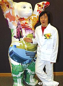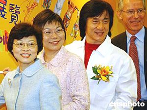 “熊熊愛心連世界”展覽三月二十六日在香港舉行記者會,該展將于五月至六月在維多利亞公園展出,是次活動旨在宣揚(yáng)愛心、和平與團(tuán)結(jié),同時(shí)推動公眾藝術(shù)。圖為香港民政事務(wù)總署署長陳甘美華、康樂及文化事務(wù)署署長王倩儀、明星成龍以及德國駐香港總領(lǐng)事海因裹希·威廉·博伊特在記者會上簽名。作者:錢興強(qiáng)