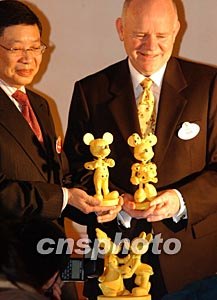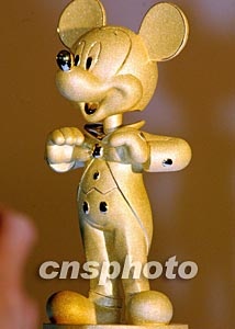 香港迪斯尼樂園三月三十日在香港舉行新聞發(fā)布會(huì),宣布該園將與著名珠寶品牌周生生連手,在香港迪斯尼樂園的美國小鎮(zhèn)大街營(yíng)運(yùn)珠寶店,圖為在發(fā)布會(huì)上展示迪斯尼樂園獨(dú)家經(jīng)營(yíng)鑲嵌鉆石的卡通形象。中新社記者:錢興強(qiáng)