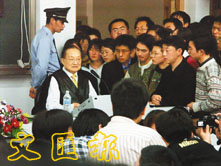 中新網(wǎng)4月8日電 據(jù)香港文匯報報道,6日下午3點,金庸在浙江大學(xué)講學(xué),與學(xué)生們探討讀書、做人與做學(xué)問的問題。