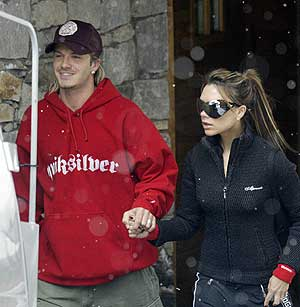 貝克漢姆與妻子維多利亞從他們?cè)诜▏?guó)阿爾卑斯山的度假屋里走出來(lái)時(shí)手拉著手(見(jiàn)圖一),小貝四天的假期已結(jié)束并將返回馬德里參加球隊(duì)訓(xùn)練。小貝離開(kāi)前親吻辣妹,好像在對(duì)她說(shuō)“別管那些,你是我的唯一”。