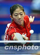 2004年雅典奧運(yùn)會(huì)乒乓球亞洲區(qū)預(yù)選賽四月九日在北京舉行,中國隊(duì)女選手牛劍鋒首戰(zhàn)輕取對手。中新社記者:毛建軍