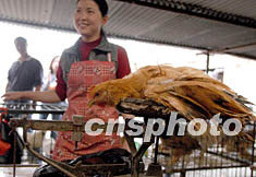 四月十一日,北京一家農(nóng)貿(mào)市場(chǎng)開始出售活禽。禽流感疫情已得到有效控制,在北京市各大農(nóng)副市場(chǎng)中沉寂許久的“活禽區(qū)”,從十日起陸續(xù)恢復(fù)經(jīng)營(yíng),但現(xiàn)場(chǎng)宰殺活禽仍然有嚴(yán)格的要求。中新社記者:張宇