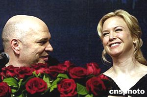 四月十二日下午,剛剛獲得奧斯卡最佳女配角的美國著名影星蕾尼·齊薇格攜影片《冷山》來華。該影片將于四月三十日在中國上映。圖為蕾尼·齊薇格(右)與影片導(dǎo)演、英國著名導(dǎo)演安東尼·明格拉(左)在媒體見面會現(xiàn)場。作者:高遠(yuǎn)