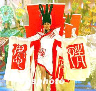 2004年4月12日晚上,在第三屆中國河南國際投資貿(mào)易洽談會開幕式大型文藝晚會上,一組根據(jù)中原歷史、歷史文物設(shè)計(jì)的時(shí)裝,給觀眾留下了深刻印象。馬健 攝