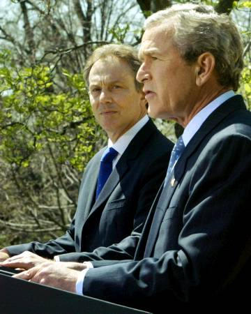 中新網(wǎng)4月17日電 據(jù)法新社報(bào)道,美國(guó)總統(tǒng)布什及其親密盟友英國(guó)首相布萊爾16日在白宮舉行了90分鐘的會(huì)晤,雙方表現(xiàn)出對(duì)伊拉克問題的一致態(tài)度,誓言稱美國(guó)領(lǐng)導(dǎo)的駐伊聯(lián)軍將看到伊拉克新政府在6月30日前接管伊拉克主權(quán)以及2005年1月完成伊拉克大選。