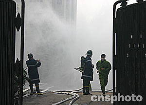 天原化工廠搶險(xiǎn)指揮部目前已經(jīng)撤離到離核心區(qū)一公里外桃花山莊。記者在山莊可以俯瞰到現(xiàn)場(chǎng)的情況。