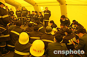 今天下午,重慶市對天原化工總廠殘存有液態(tài)氯的三個貯氣罐進(jìn)行了人工引爆,三個貯氣罐目前已被摧毀,險情被排除。十五日晚重慶天原化工總廠發(fā)生氯氣泄漏爆炸事件,十五萬群眾被疏散。圖為消防官兵在洗消帳篷內(nèi)布署工作。作者:鄒輝
