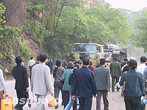圖:重慶市委書記黃鎮(zhèn)東前往指揮引爆工作 (2004-04-18 19:42:52)