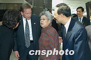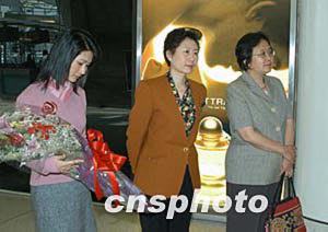 美東時(shí)間四月十九日下午,中國(guó)國(guó)務(wù)院副總理吳儀率經(jīng)貿(mào)代表團(tuán)抵達(dá)美國(guó),準(zhǔn)備參加第十五屆中美商貿(mào)聯(lián)委會(huì)會(huì)議。圖為中國(guó)常駐聯(lián)合國(guó)代表王光亞的夫人叢軍(右)、中國(guó)駐紐約總領(lǐng)事劉碧偉的夫人方淳(中)準(zhǔn)備了獻(xiàn)花,在紐約肯尼迪國(guó)際機(jī)場(chǎng)迎候吳儀副總理一行。作者:陳建