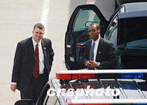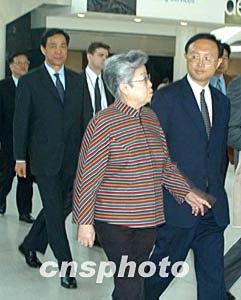 中國(guó)國(guó)務(wù)院副總理吳儀(中)率經(jīng)貿(mào)代表團(tuán)抵達(dá)美國(guó)紐約肯尼迪國(guó)際機(jī)場(chǎng),準(zhǔn)備參加二十一日華盛頓舉行的第十五屆中美商貿(mào)聯(lián)委會(huì)會(huì)議。薄熙來(lái)(左)作為代表團(tuán)成員,首次以中國(guó)商務(wù)部部長(zhǎng)的身份訪美。中國(guó)駐美大使楊潔篪(右)前往機(jī)場(chǎng)迎接吳儀一行。作者:陳建