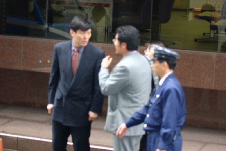 中國駐大阪總領(lǐng)館領(lǐng)事部負責人趙大維(左一)在現(xiàn)場與日本警方進行交涉。(《關(guān)西華文時報》叢中笑/春風攝影報道)