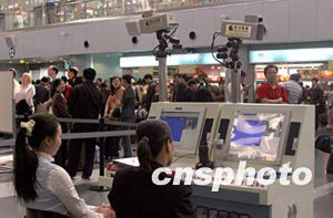 北京四月二十二日確診一例SARS疑似病例后,北京市迅速啟動相應的SARS預警機制。二十三日,北京機場在候機大廳新啟用紅外熱成像自動搜索測溫系統(tǒng),對所有進出旅客實行嚴格的體溫測試。中新社記者:張勤