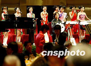 晚宴結(jié)束時,前來參加年會的美國前總統(tǒng)喬治·布什,走上主席臺與民樂演奏家們進行切磋。這位曾經(jīng)長期擔任駐中國大使的老政治家,透露出對中國民間音樂的熱愛。