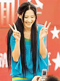 新出爐影后張柏芝雖然未能出席,但她因今年連續(xù)四度獲得影后大獎,心情異常興奮,在橫店出席《無極》見面會的張柏芝,除向《忘不了》的臺前幕后致謝外,還特別要多謝導(dǎo)演。