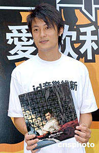 歌星麥浚龍4月28日在香港商業(yè)電臺出席《id音樂維新》記者會,手持其個人音樂專輯,呼吁大家支持正版音樂。作者:鄧慶樂