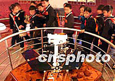 四月三十日,北京小學(xué)生正在中國科技館觀看由美國國家航空航天局(NASA)提供的“機(jī)遇號”火星車二分之一模型。這是“機(jī)遇號”火星車二分之一模型首次在中國公開展出。該模型由NASA制作,全世界僅有兩個。該模型與火星車實物在制作材料相同,但個頭較小,它也沒有全身武裝的科學(xué)探測儀器。中新社記者:張煒